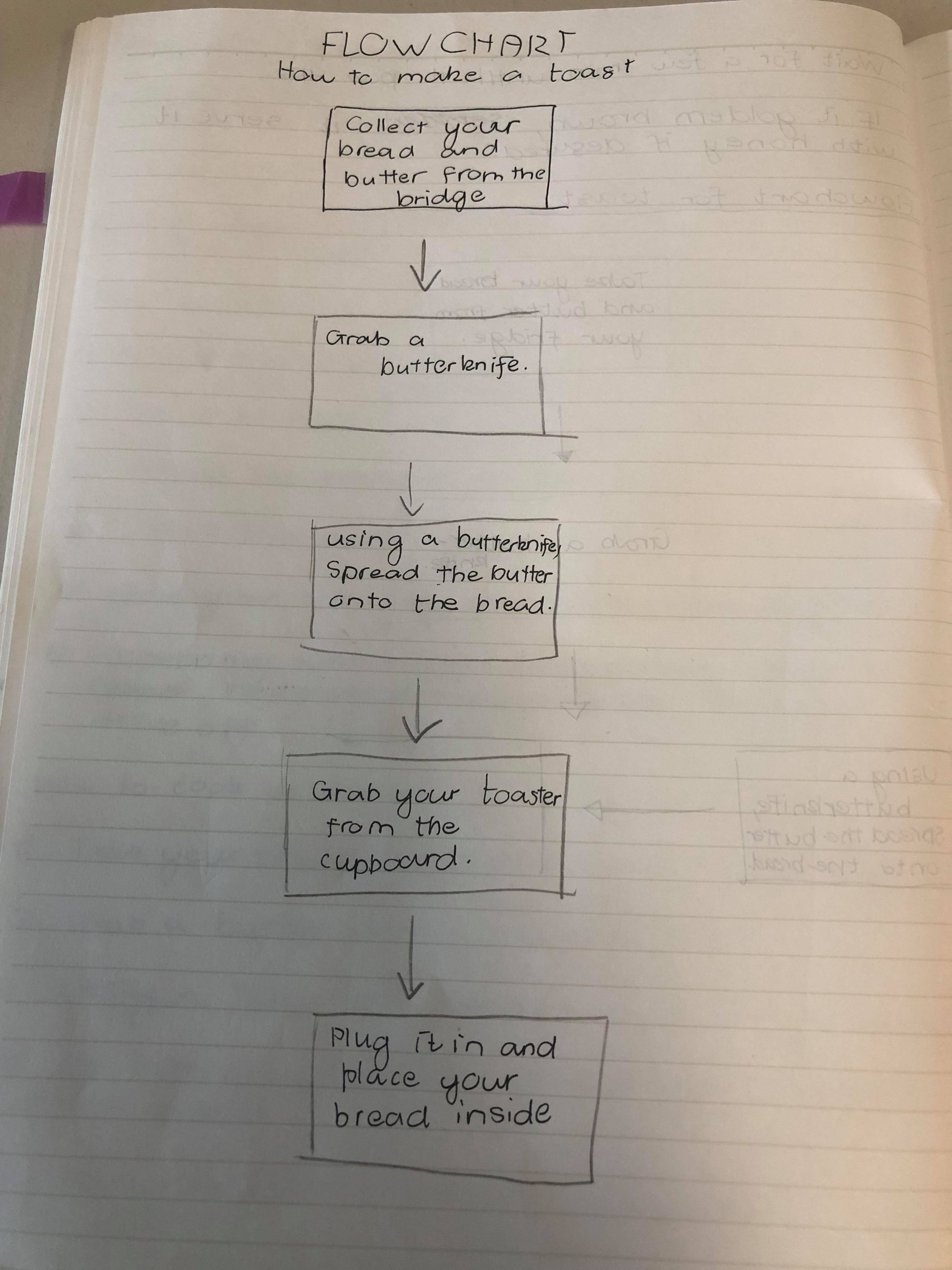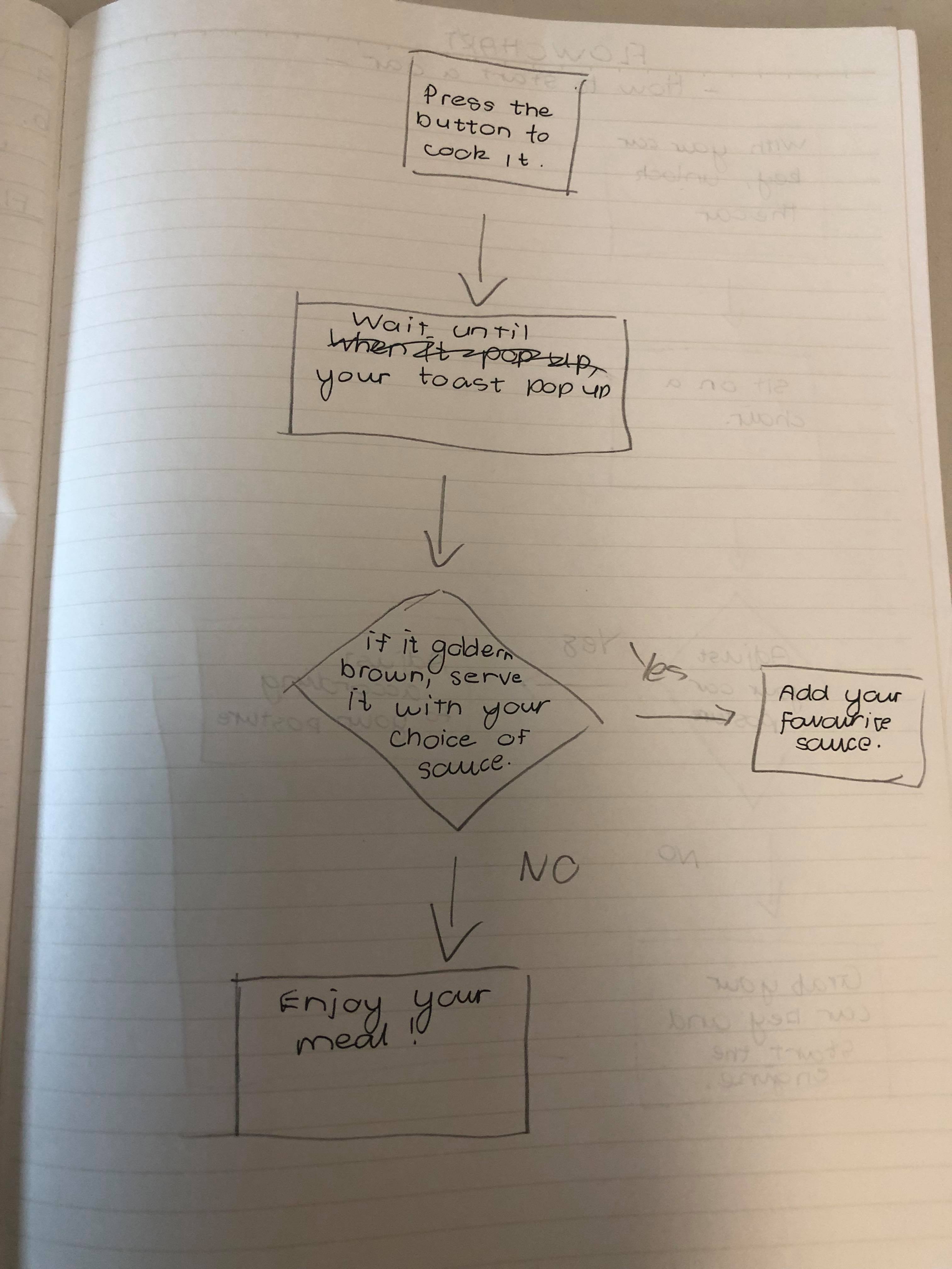 In Week 1 studio class, I conducted a flowchart of how to prepare a toast.
