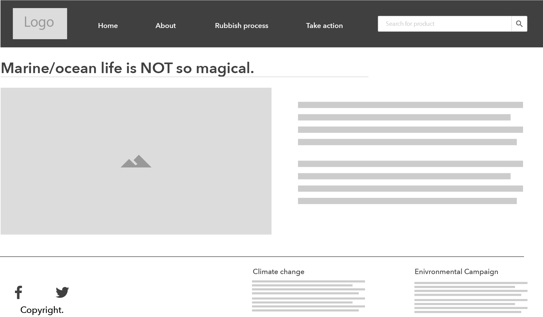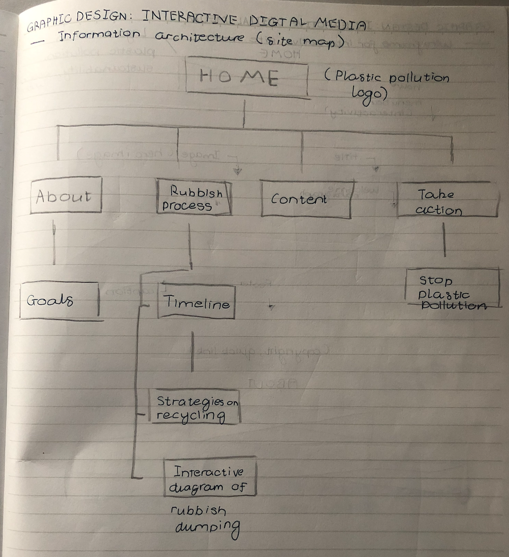 Down below are my three layouts for my interactive website that addresses the cause and effect of marine plastic pollution toward the world and tied to the future event of climate change.